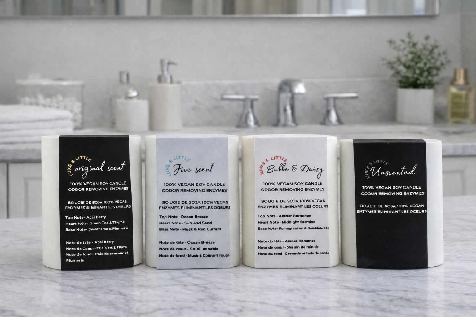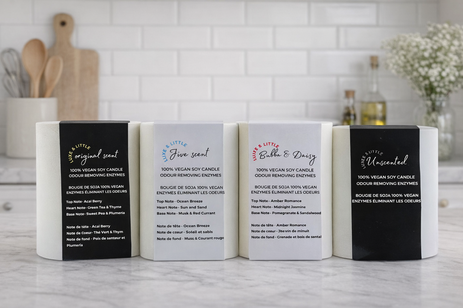 Soy odour eliminator candles made by Luxe & Little are premium quality, 100% pure soy wax and top-shelf fragrance and essential oils. Such quality ingredients make Luxe candles a premium luxury brand, deserving to be in your home.